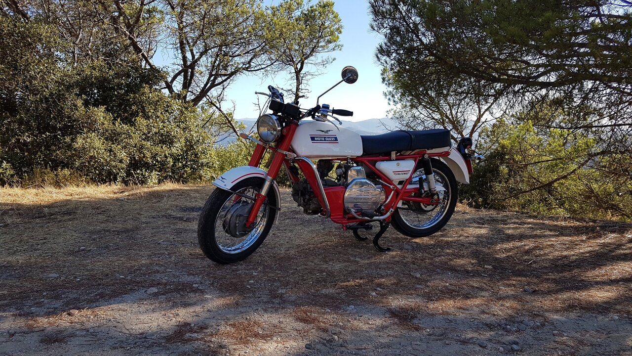 Nei primi anni '80 acquistai questa moto; non la conoscevo granché, per quei tempi era già una moto "classica", da subito risultò interessante, potente, poderosa. Mi piacque subito e la acquistai, tutto sommato, per pochi soldi. Per circa 10 anni l'ho utilizzata anche se poi, affiancata dalla più moderna V50III, percorreva meno chilometri. Dal 2020 è restaurata. Ho cercato di mantenere la fedeltà alla colorazione originale.